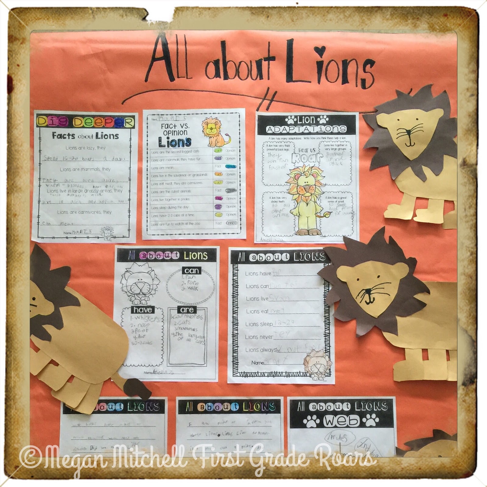 You may notice that my middle project is a little different. I have a student with special needs that is not exactly writing yet so I modified this for her. The paper says we are roaring over you so she made the cutest roaring face!